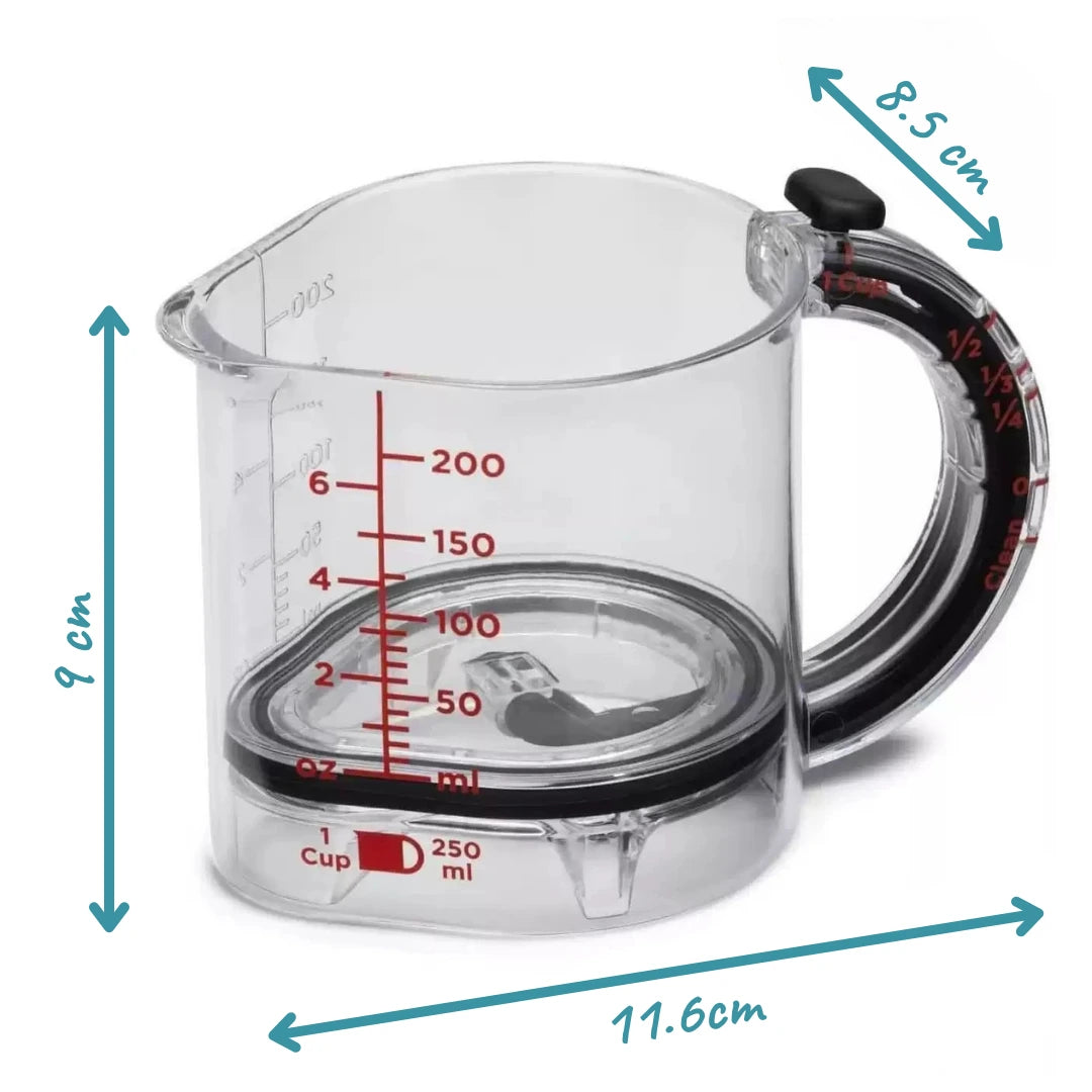 Ayarlı tabanı; 1 cup (250 mL), 1/2, 1/3 ve 1/4’e anında geçer. Mutfağınızda hızlı ve net ölçüm sunar.